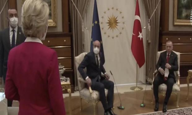 Ο επικεφαλής της τουρκικής διπλωματίας , Μεβλιούτ Τσαβούσογλου, αναφέρθηκε στη διάρκεια συνέντευξης Τύπου με τον κουβεϊτιανό ομόλογό του, στο καψόνι στην πρόεδρο της Κομισιόν, που βρέθηκε να περιμένει όρθια κατά τη συνάντηση στο προεδρικό μέγαρο στην Άγκυρα να της υποδείξουν που θα καθίσει, την ώρα που ο πρόεδρος του Ευρωπαϊκού Συμβουλίου Σαρλ Μισέλ και ο Ρετζέπ Ταγίπ Ερντογάν είχαν ήδη στρογγυλοκαθίσει στις δύο πολυθρόνες που είχαν ετοιμαστεί μόνον γι' αυτούς. Η Φον ντερ Λάιεν αναγκάστηκε τελικά να καθίσει σε έναν απομακρυσμένο καναπέ μακριά από τον Ερντογάν και τον Μισέλ, σ' ένα περιστατικό που προκάλεσε σάλο στην Ευρώπη για την «τουρκική φιλοξενία» και τη στάση του Μισέλ.