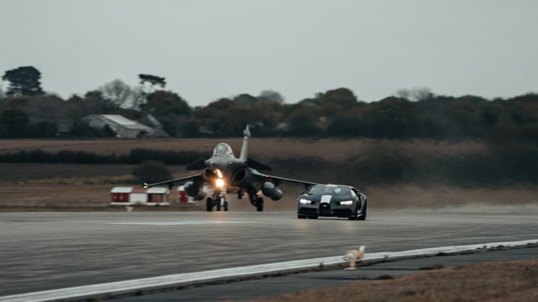 Η Bugatti πραγματοποίησε την απόλυτη κόντρα. Μια μάχη μεταξύ των κορυφαίων κατασκευών της γαλλικής βιομηχανίας. Το ραντεβού δόθηκε στη ναυτική βάση Landivisiau, με το θέαμα να κόβει την ανάσα, όπως γραφει ο Λουκάς Παπαλάμπρου στο zougla.gr.
