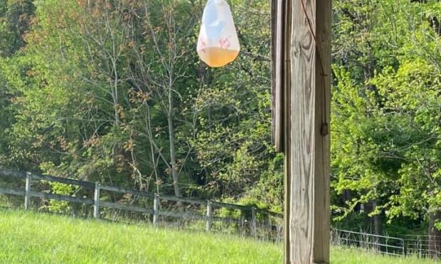 Γνωρίζατε ότι οι μέλισσες προσελκύονται από το άρωμα της χλωρίνης με βάση το έλαιο κουκουναριού τύπου “PineSol”; Και μπορούμε να χρησιμοποιήσουμε αυτήν τη γνώση προς όφελός μας. Το γλυκό άρωμα αυτής της χλωρίνης τις έλκει ενώ το διάλυμα καθαρισμού κάνει αργότερα την υπόλοιπη δουλειά. Η Jill παρέχει επιπλέον αποδείξεις κοινοποιώντας φωτογραφίες αυτού του κόλπου στην ανάρτηση στο Facebook.