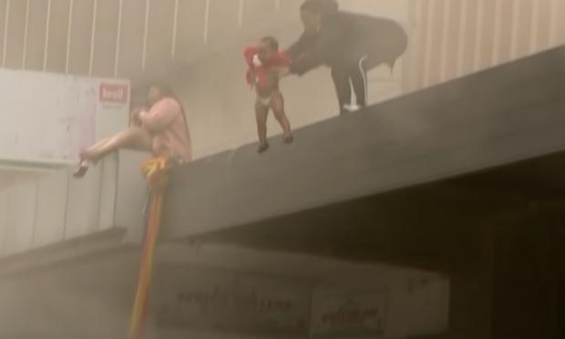 Όλα έγιναν στο Ντάρμπαν της Νότιας Αφρικής. Η μητέρα και το δυο ετών κοριτσάκι της καθώς και άλλη μια γυναίκα βρέθηκαν στο περβάζι ενός φλεγόμενου κτιρίου και κινδύνευαν από τη φωτιά.