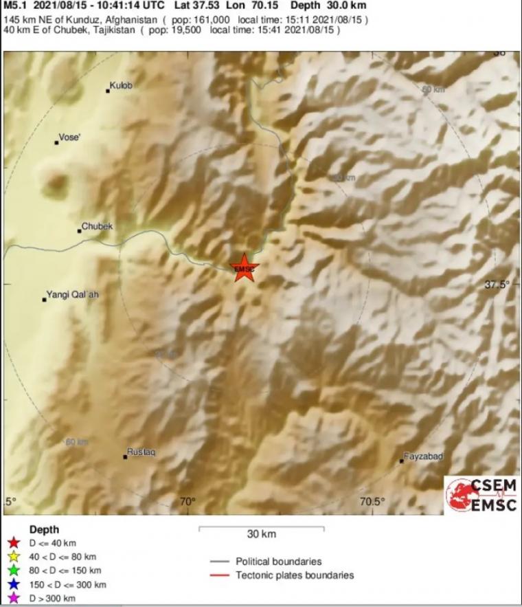 Η σεισμική δόνηση εντοπίζεται 53 χιλιόμετρα από την Fayzabad, την επαρχιακή πρωτεύουσα και μεγαλύτερη πόλη της επαρχίας Badakhshan