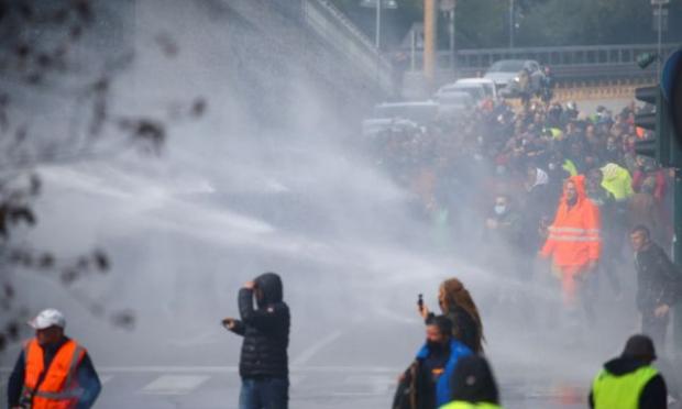Οι αστυνομικές δυνάμεις δεν επέτρεψαν στους διαδηλωτές (η κινητοποίηση δεν είχε λάβει άδεια από την νομαρχία) να προσεγγίσουν τα γραφεία του κεντροαριστερού συνδικάτου Cgil.