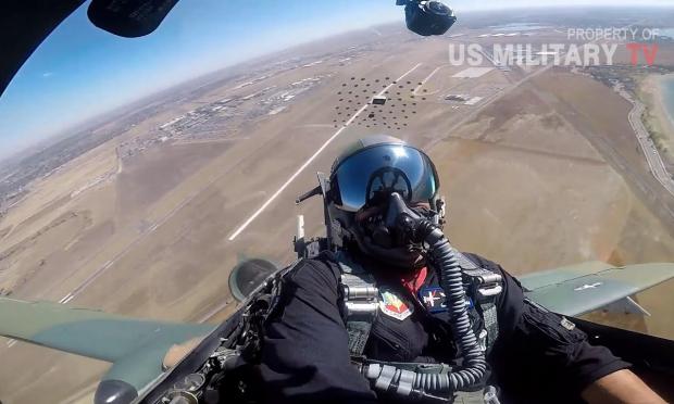 Πλάνα GoPro από το πιλοτήριο ενός επιθετικού αεροσκάφους A-10 Thunderbolt II κατά τη διάρκεια του Great Colorado Airshow στο Loveland στις 16 Οκτωβρίου 2021.
