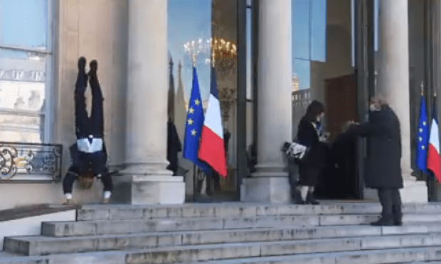 Στα Ηλύσια Πεδία, οι σημαιοφόροι και οι εκπρόσωποι πατριωτικών συλλόγων κλήθηκαν σε γεύμα με την ευκαιρία αυτή. Όμως, όπως μεταδόθηκε από το BFMTV, μια εικόνα δεν πέρασε απαρατήρητη: αυτή ενός στρατιώτη που στέκεται ανάποδα στα σκαλιά των Ηλυσίων Πεδίων...