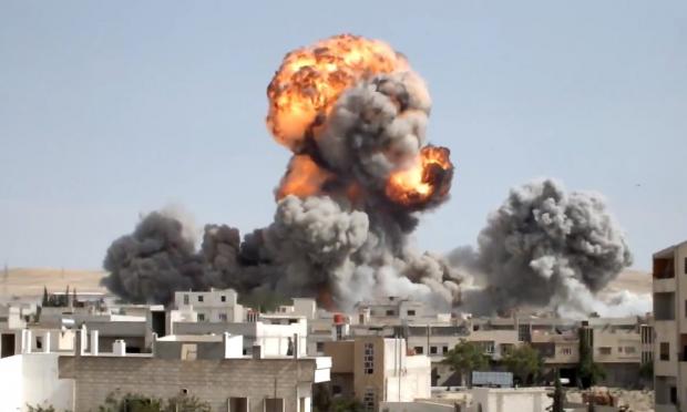Οι αμερικανικές δυνάμεις έριξαν βόμβα 500 λιβρών (227 κιλών) και 2.000 λιβρών (907 κιλών) σε περιοχή κοντά στην πόλη Μπαγκούζ.