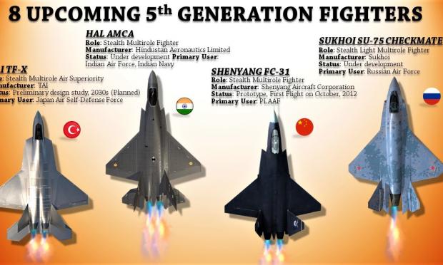 Το πρώτο από αυτά είναι γενικά αποδεκτό ότι είναι το F-22 της Lockheed Martin. Οι επόμενοι τύποι περιλαμβάνουν τα Lockheed Martin F-35 και Sukhoi Su-57. Υπάρχουν πολλές χώρες όπως η Ινδία, η Κίνα, η Ρωσία, η Ιαπωνία, η Τουρκία, η Σουηδία που προσπαθούν να κατασκευάσουν μαχητικά αεροσκάφη 5ης γενιάς. Αυτό το βίντεο παρουσιάζει τα 8 επερχόμενα μαχητικά αεροσκάφη 5ης γενιάς.