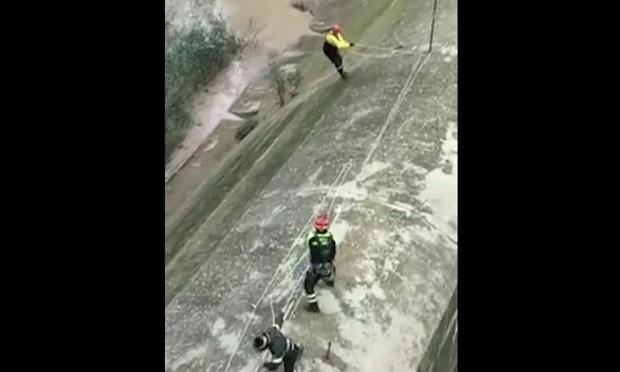 Μόλις οι πυροσβέστες δέχτηκαν την κλήση για βοήθεια, οι αλπινιστές του πυροσβεστικού τμήματος «Speleo Alpinistica Fluviale» μετέβησαν αμέσως στο σημείο.