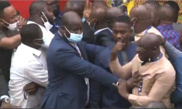 Τα μέλη του κοινοβουλίου κινήθηκαν απειλητικά προς μπροστινό μέρος της αίθουσας όταν ο ο αντιπρόεδρος Τζόζεφ Οσέι-Οβουσού πρότεινε να συζητηθεί και να ψηφιστεί ο φόρος με εσπευσμένη διαδικασία «επείγοντος». Κάποιοι τοu έριξαν στις μπουνιές και συνεπλάκησαν ενώ άλλοι προσπαθούσαν να συγκρατήσουν συναδέλφους στους.