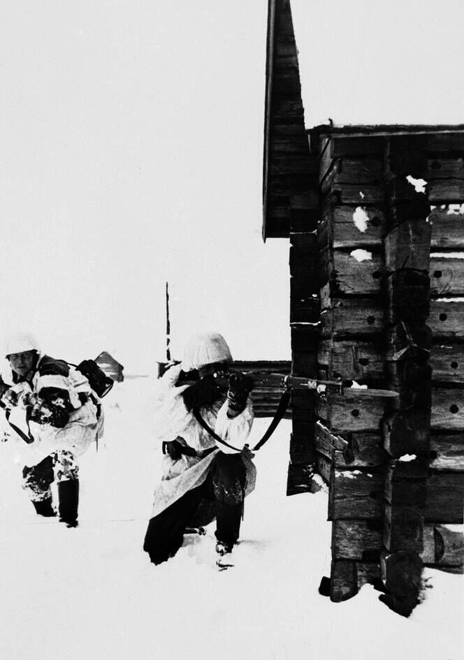 1941, Σοβιετική Ένωση. Γερμανοί στρατιώτες με χειμερινές στολές που τους καμουφλάρουν στο χιόνι, στα περίχωρα της Μόσχας.