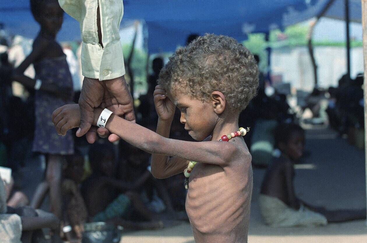 1992, Σομαλία. Ένα αποστεωμένο πεντάχρονο αγόρι στο κέντρο υποδοχής προσφύγων της Μπαντέρα.