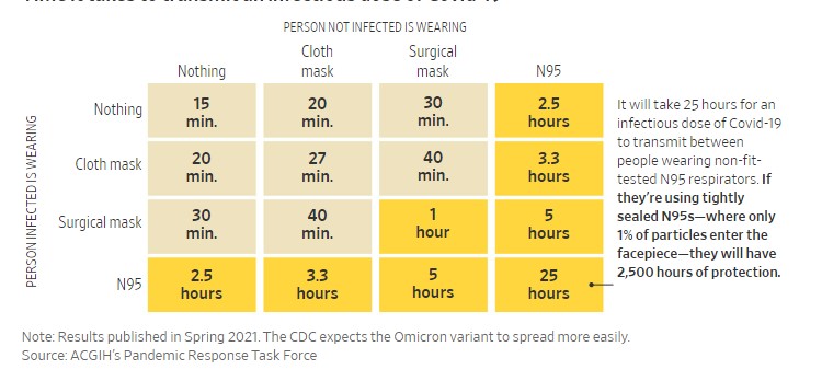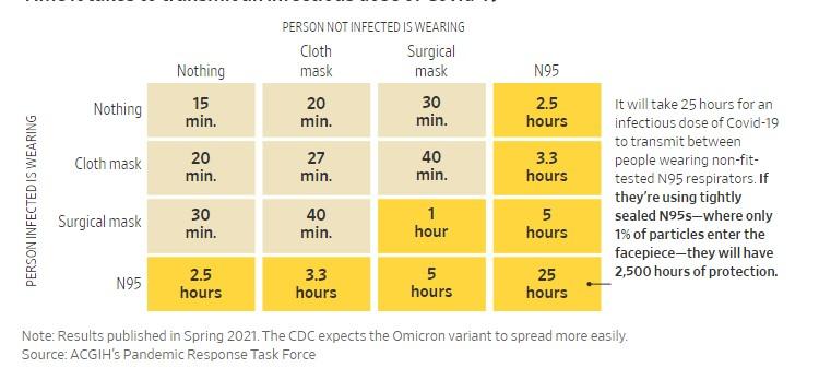 Αν, ωστόσο, και οι δυο φορούν KN95 (N95), με σωστή εφαρμογή, μπορεί να χρειαστούν 25 ώρες ώστε να κολλήσει ο ένας από τον άλλον.