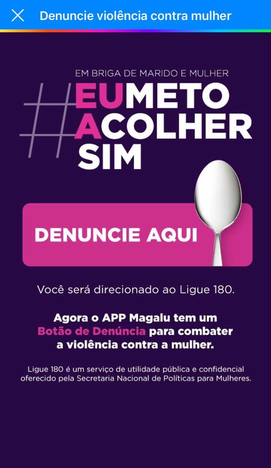 Εσωτερικές εκτιμήσεις δείχνουν ότι περίπου το 2% όλων των γυναικών που εργάζονται στη Magalu υποφέρουν από κάποια μορφή ενδοοικογενειακής βίας, ποσοστό που η εταιρεία πιστεύει ότι αντανακλά το ευρύτερο πρόβλημα στη βραζιλιάνικη κοινωνία. Η πρόεδρος της Magalu, Luiza Trajano, έχει θέσει ως προτεραιότητα την υποστήριξη των επηρεαζόμενων εργαζομένων και αναδείχθηκε ως ένας από τους 100 πιο επιδραστικούς ανθρώπους του περιοδικού Time για το 2021 για τη δουλειά της στην προώθηση των γυναικείων θεμάτων.