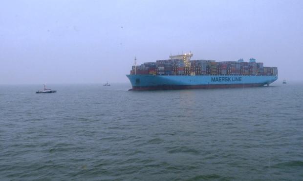 Ένα εξαιρετικά μεγάλο πλοίο μεταφοράς εμπορευματοκιβωτίων της Δανικής AP Moller-Maersk καθηλώθηκε κοντά στο λιμάνι του Bremerhaven της Γερμανίας.