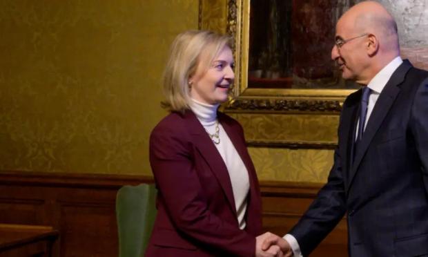 Με την Βρετανίδα υπουργό Εξωτερικών Λιζ Τρας, συναντήθηκε χθες Δευτέρα στο Λονδίνο ο Έλληνας υπουργός Εξωτερικών, Νίκος Δένδιας.