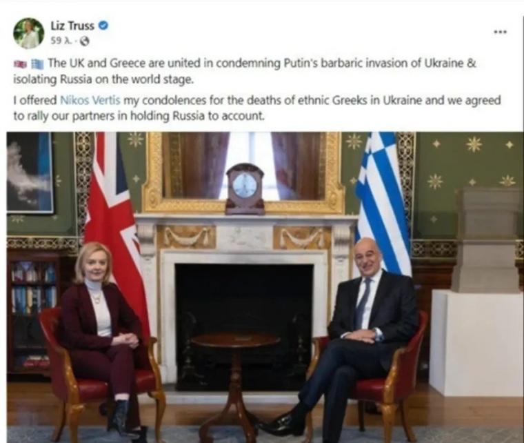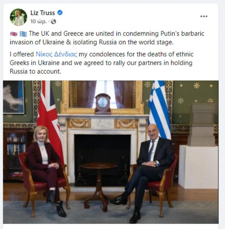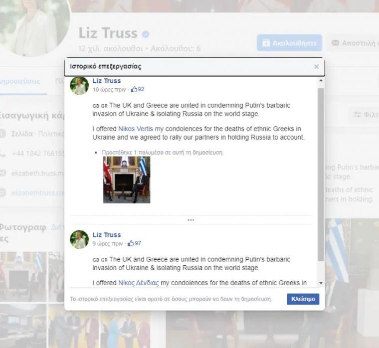 Μετά το πέρας της συνάντησής τους, η Λιζ Τρας έκανε μια σχετική ανάρτηση στο Facebook, με κοινή τους φωτογραφία, όμως έκανε ένα λάθος…