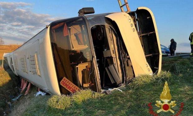Σήμερα το πρωί σημειώθηκε αυτοκινητιστικό δυστύχημα στον Ιταλικό αυτοκινητόδρομο Α14, στο ύψος της πόλης Forlì, όταν ένα λεωφορείο με Ουκρανούς επιβάτες ανετράπη. Αποτέλεσμα ήταν να τραυματιστούν πολλοί επιβάτες, ενώ η Πυροσβεστική εντόπισε κάτω από τα συντρίμμια του λεωφορείου το άψυχο σώμα μιας νεαρής γυναίκας.