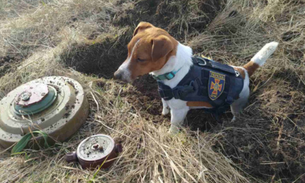 Το όνομα του σκύλου είναι Πατρόν που στα ουκρανικά σημαίνει σφαίρα. Είναι δύο ετών και είναι η ψυχή και η μασκότ μιας μονάδας αποναρκοθέτησης του Τσερνίχιβ, της Ουκρανίας.