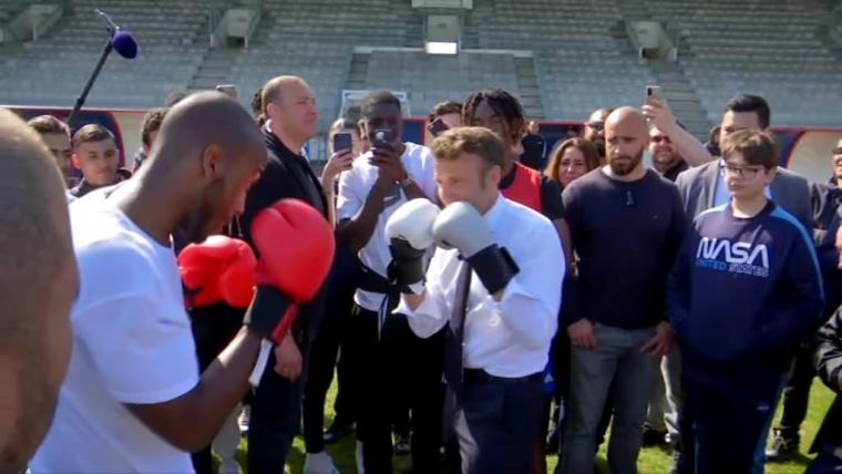 Ο Μακρόν, επισκεπτόμενος εξάλλου αθλητικό κέντρο της περιοχής, ανταποκρίθηκε σε πρόσκληση αθλητή της πυγμαχίας, φόρεσε γάντια του μποξ και αντάλλαξε κάποια χτυπήματα μαζί του.
