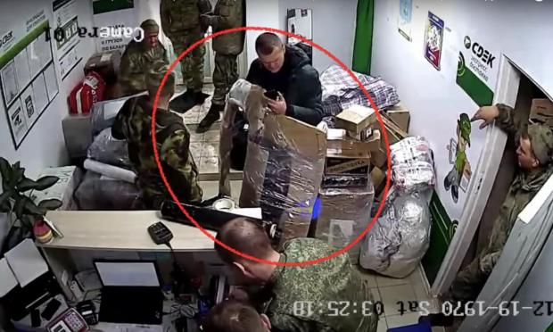 Ο άνδρας αναγνωρίστηκε από τις εικόνες των καμερών ασφαλείας στις οποίες φαίνεται να ετοιμάζει δέματα με τα εμπορεύματα που έκλεψαν μετά την κατάληψη του προαστίου έξω από το Κίεβο για να σταλούν στη Ρωσία.