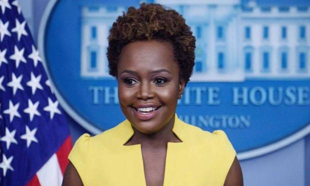 Η Καρίν Ζαν-Πιερ θα γίνει η πρώτη μαύρη και η πρώτη ομοφυλόφιλη που αναλαμβάνει εκπρόσωπος του Λευκού Οίκου, σημειώνουν το Γαλλικό Πρακτορείο και το Reuters.
