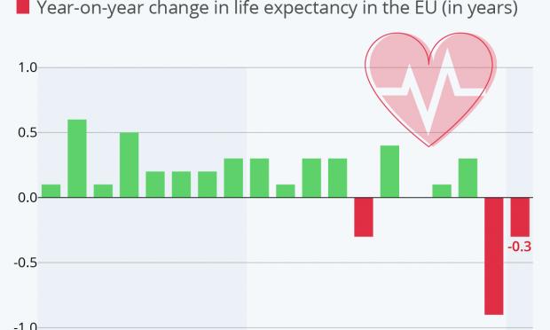 Το 2020, ωστόσο, ο μέσος όρος των ετών ζωής που κάποιος γεννήθηκε στις 27 χώρες μειώθηκε από 81,3 σε 80,4. Το 2021, το ποσοστό αυτό μειώθηκε εκ νέου κατά 0,3 έτη.