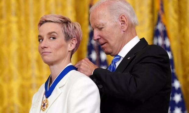 Η κορυφαία προσωπικότητα του αμερικανικού ποδοσφαίρου γυναικών, Μέγκαν Ραπίνο, η οποία παρασημοφορήθηκε την Πέμπτη (07/07) από τον Τζο Μπάιντεν, στον Λευκό Οίκο, μαζί με ακόμη 12 προσωπικότητες, απέτισε… σιωπηλό φόρο τιμής στην μπασκετμπολίστρια, Μπρίτνεϊ Γκράϊνερ, η οποία κρατείται στη Ρωσία.