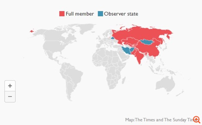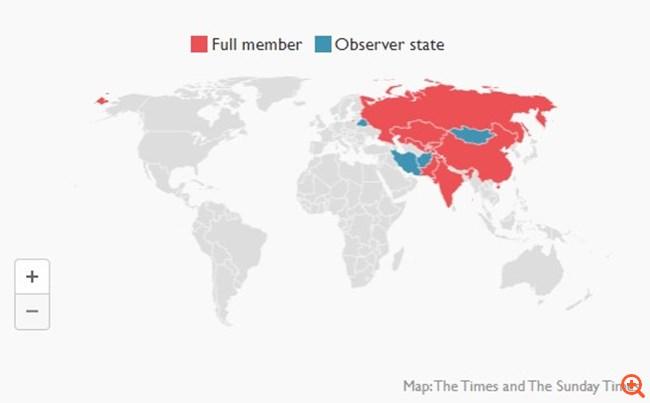 Εκτός από την Κίνα και τη Ρωσία, η ομάδα περιλαμβάνει την Ινδία και πέντε "σταν": το Πακιστάν, το Τατζικιστάν, το Καζακστάν, το Κιργιστάν και το Ουζμπεκιστάν.