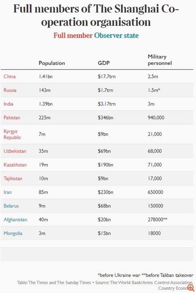 Όπως αναφέρει δημοσίευμα των Times του Λονδίνου, αυτό πρόκειται να αλλάξει, καθώς ο Οργανισμός Συνεργασίας της Σαγκάης (SCO) είναι έτοιμος να κάνει ένα τολμηρό βήμα. Σε μια εξέλιξη που είναι βέβαιο ότι θα εκνευρίσει την Ουάσινγκτον, χορηγεί την ιδιότητα του πλήρους μέλους στο Ιράν, μια χώρα που θεωρείται στην Αμερική ως κρατικός χορηγός της τρομοκρατίας, ενώ το δημοσίευμα αναφέρει πως η Τουρκία αν και μέλος του ΝΑΤΟ, φέρεται επίσης να εξετάζει το ενδεχόμενο υποβολής αίτησης. Προς το παρόν είναι ένας από τους "εταίρους διαλόγου" του SCO, ένα καθεστώς που θα προσφερθεί αυτή την εβδομάδα επίσης στη Σαουδική Αραβία και το Κατάρ.