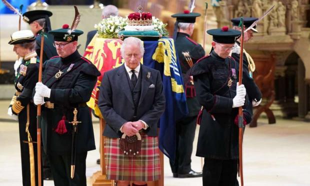 Βουβός είναι ο θρήνος στον καθεδρικό ναό του St Giles στο Εδιμβούργο με την αγρυπνία για τη Βασίλισσα Ελισάβετ και τα τέσσερα παιδιά της να στέκονται με σκυμμένα τα κεφάλια τους στις τέσσερις πλευρές του φέρετρου σε μια τελετή που είναι γνωστή ως Αγρυπνία των Πριγκίπων. Το λαϊκό προσκύνημα στη σορό της Ελισάβετ Β΄ ξεκίνησε αργά το βράδυ της Δευτέρας μετά τη δοξολογία στον Καθεδρικό Ναό του Εδιμβούργου.