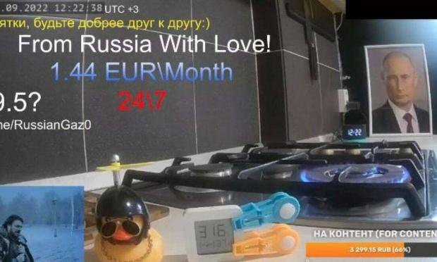 Ένα στιγμιότυπο, με την κάμερα στραμμένη στις αναμμένες εστίες. Στο βάθος μια φωτογραφία σε ένα καρέ του Βλαντιμίρ Πούτιν , μετά ένα θερμόμετρο που δείχνει τη θερμοκρασία του δωματίου και ένα ρολόι για να παρακολουθήσετε τα ζωντανά πλάνα. Είναι η σκηνογραφία που έχει γίνει viral τις τελευταίες ώρες και υπεύθυνος είναι το κανάλι Twitch RussianGas1 , το οποίο αποφάσισε να απαντήσει στις κυρώσεις της Ευρωπαϊκής Ένωσης.