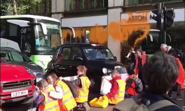 Οι ακτιβιστές, που ζητούν να βάλει τέλος η κυβέρνηση σε όλα τα νέα έργα πετρελαίου και φυσικού αερίου στη χώρα, κόλλησαν τα χέρια τους στην άσφαλτο στο κέντρο του Λονδίνου περίπου στις 11 σήμερα το πρωί τοπική ώρα.