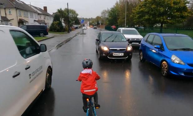 Το πεντάχρονο αγόρι έκανε ποδήλατο στη μέση ενός δρόμου στο νοτιοανατολικό Λονδίνο εν ώρα αιχμής, με τον πατέρα του να τον βιντεοσκοπεί με απόλυτη ψυχραιμία, γράφει η βρετανική εφημερίδα Daily Mail.