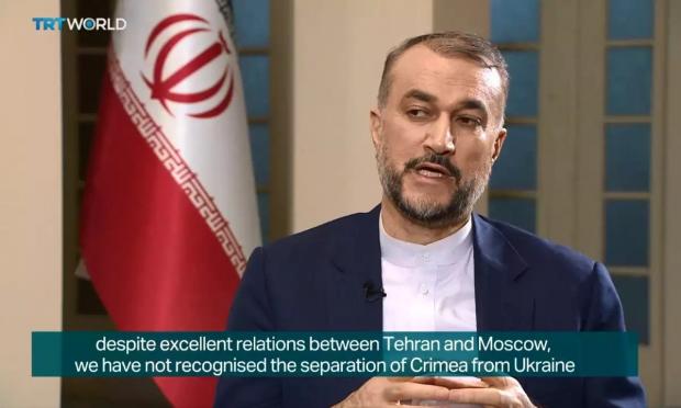 Συμφωνα με τα Novaya Gazeta Europe και ΑΠΕ-ΜΠΕ, ο Ιρανός υπουργός Εξωτερικών Χοσεΐν Αμίρ Αμπντολαχιάν δήλωσε στο πρακτορείο TRT World ότι το Ιράν δεν αναγνωρίζει την προσάρτηση της Κριμαίας και των τεσσάρων περιοχών της Ουκρανίας, παρά τις «άριστες σχέσεις με την Μόσχα».
