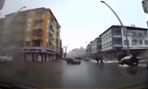 Οι εικόνες τραβήχτηκαν στο Kahramanmaraș, μια πόλη στη νότια Τουρκία με πληθυσμό άνω των 300.000 κατοίκων. Μια άλλη ηχογράφηση γίνεται από έναν άνδρα επίσης την ώρα του δεύτερου σεισμού. Άνθρωποι στο δρόμο παρακολουθούν με απογοήτευση την κατάρρευση μιας πολυκατοικίας μπροστά τους.