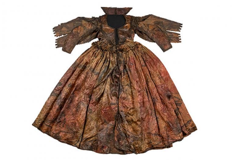 Τα δύο φορέματα είναι φτιαγμένα από ακριβό μετάξι και βρέθηκαν στο ίδιο σεντούκι. Το στυλ του μεταξωτού φορέματος παραπέμπει στη δυτικοευρωπαϊκή μόδα μεταξύ 1620 και 1630. Το φόρεμα είχε πιθανώς ασημένια ή χρυσά κουμπιά, όρθιο γιακά από λινό ή δαντέλα, καθώς και άλλα διακοσμητικά στοιχεία. Αν και σήμερα είναι κρεμ, κόκκινο και καφέ, οι ερευνητές πιστεύουν ότι αρχικά είχε ένα μόνο χρώμα. Παρά το περίπλοκο σχέδιο και το ακριβό ύφασμα, το φόρεμα πιθανότατα προοριζόταν για καθημερινή χρήση.