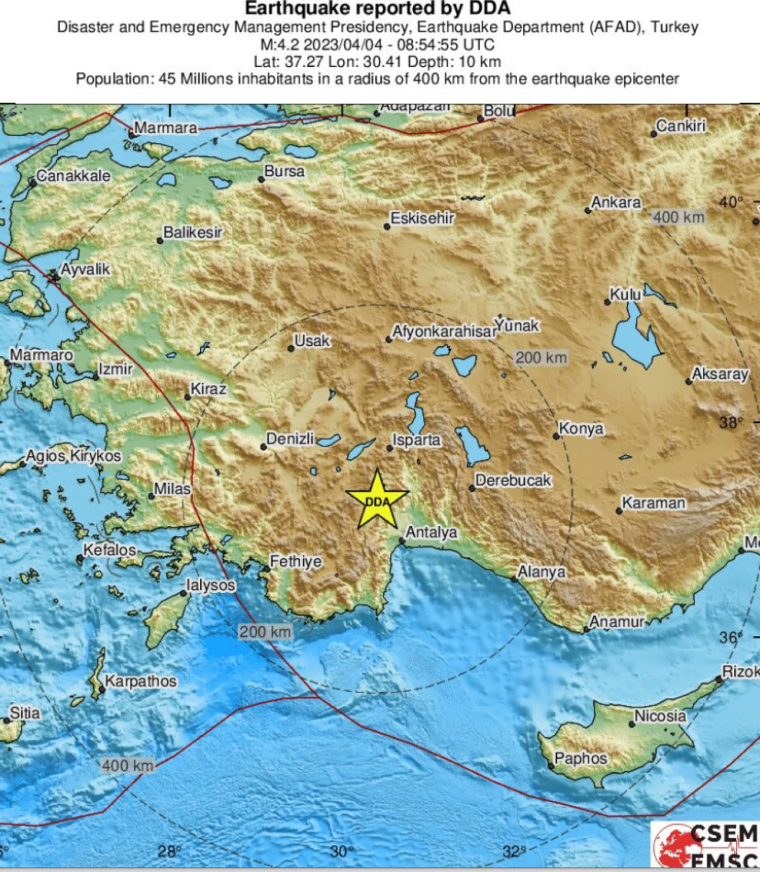 Το επίκεντρο εντοπίστηκε 46 χιλιόμετρα από την Αττάλεια.