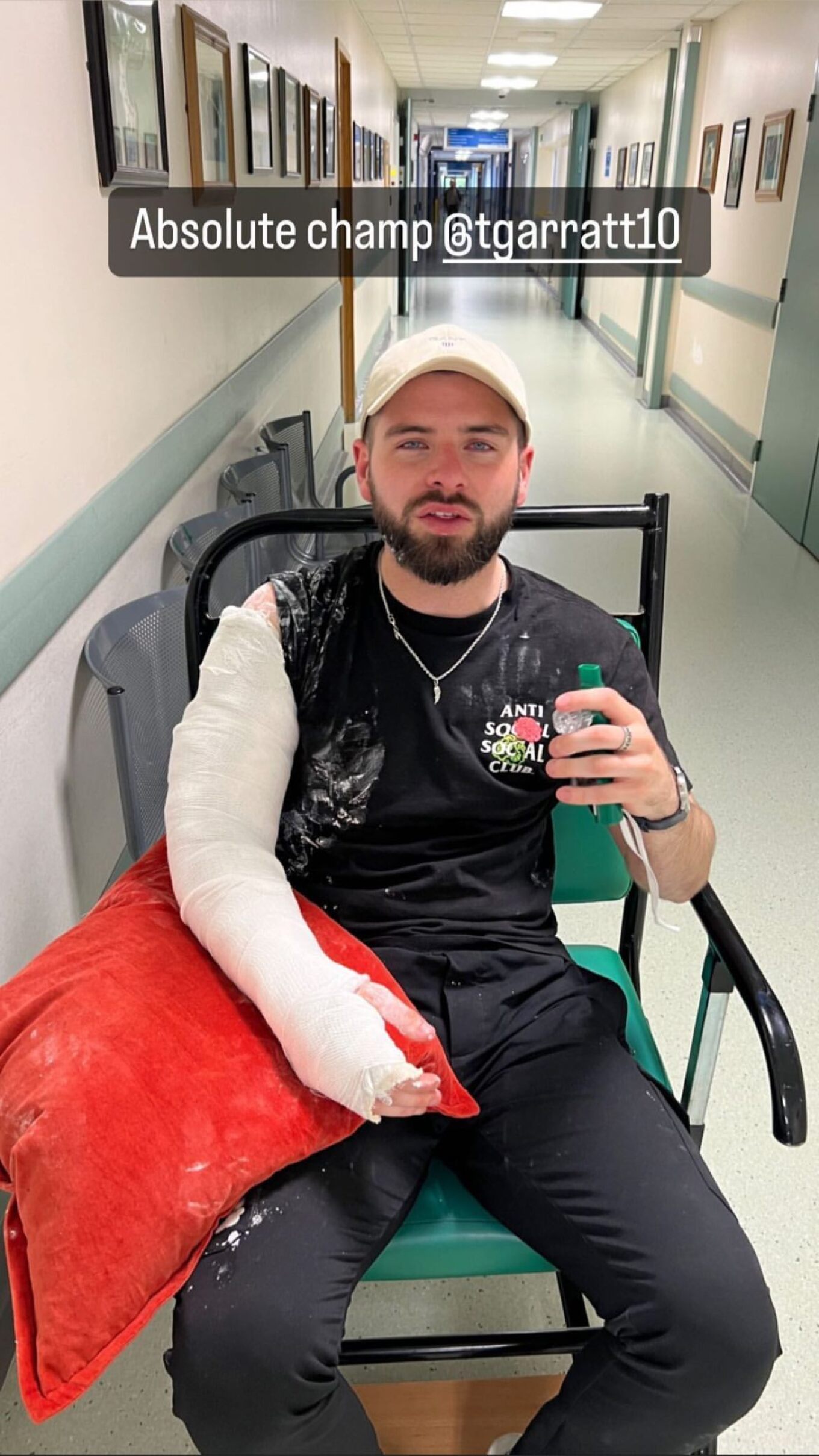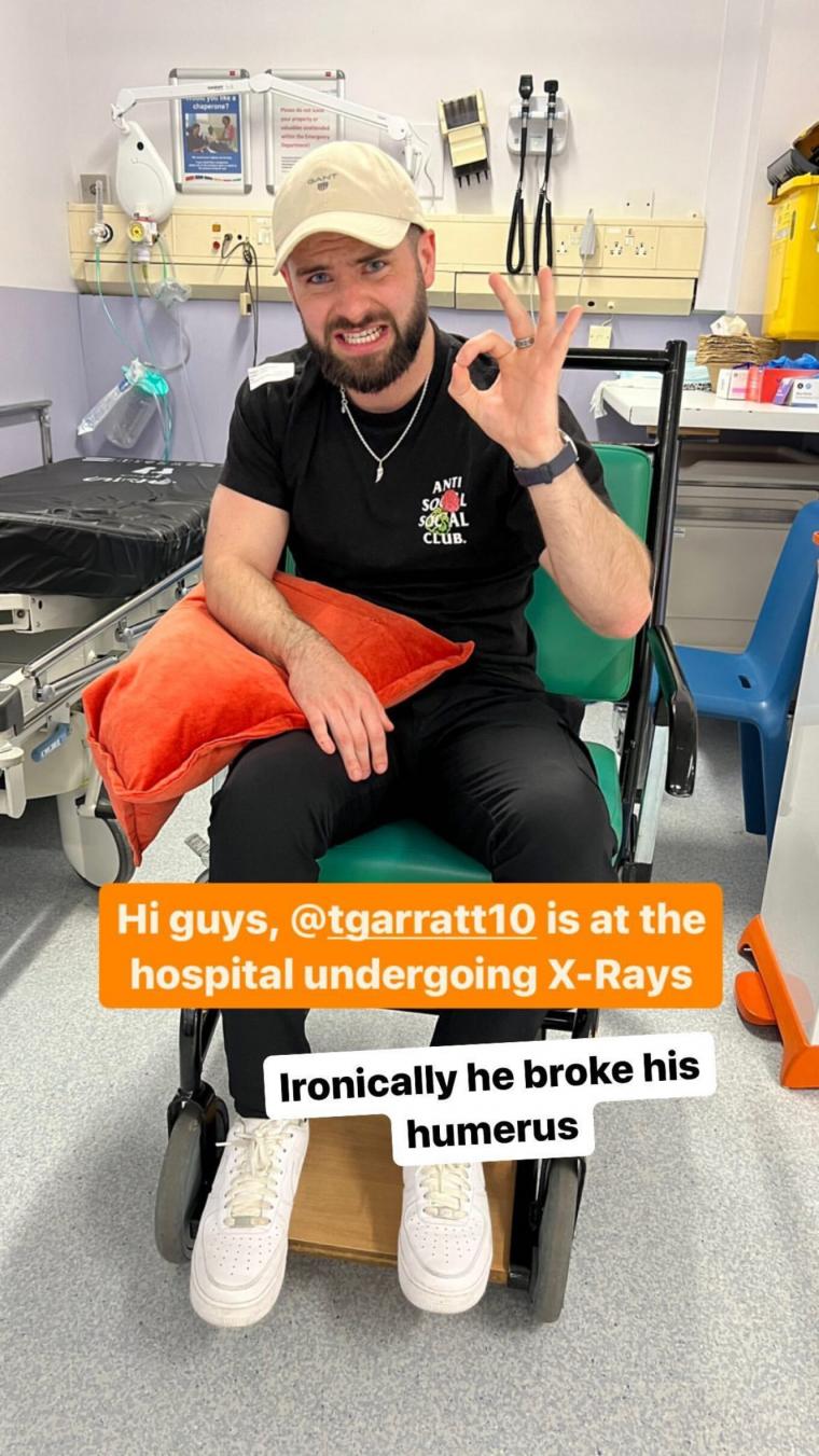 Μετά τον τραυματισμό του ο Γκάρατ μεταφέρθηκε σε νοσοκομείο όπου διαπιστώθηκε ότι υπέστη κάταγμα στο βραχιόνιο οστό και του τοποθετήθηκε νάρθηκας.