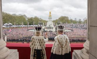 Ο βασιλιάς Κάρολος και η βασίλισσα Καμίλα εμφανίστηκαν στο μπαλκόνι των Ανακτόρων για να χαιρετίσουν το πλήθος που είχε συγκεντρωθεί έξω από τα ανάκτορα. Μαζί τους βρίσκονταν μέλη της βασιλικής οικογένειας, συμπεριλαμβανομένου του πρίγκιπα Γουίλιαμ και της οικογένειάς του.