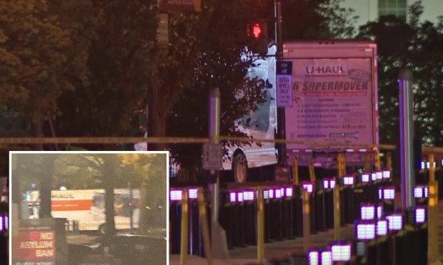 Σε βίντεο φαίνεται το ενοικιαζόμενο φορτηγό της εταιρείας U-Haul να πέφτει πάνω στις μπάρες ασφαλείας.