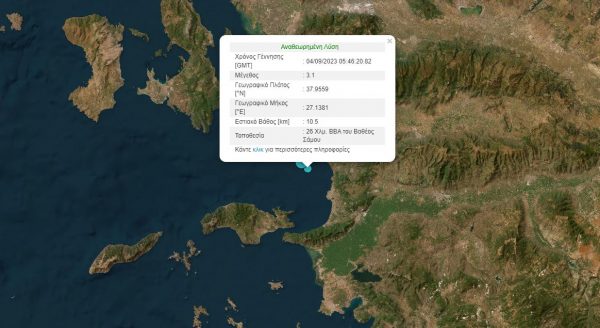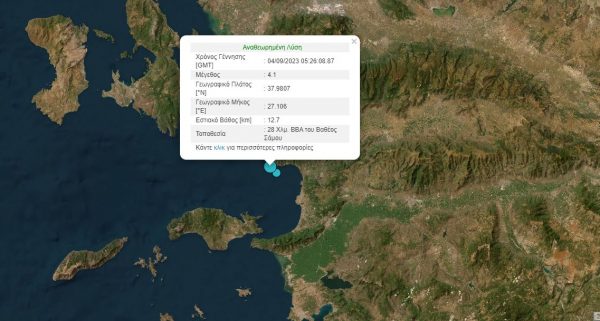 Ειδικότερα, ο πρώτος σεισμός μεγέθους 4,1 Ρίχτερ σημειώθηκε στις 08:26 ώρα Ελλάδος, και έγινε αισθητός στη Σάμο.