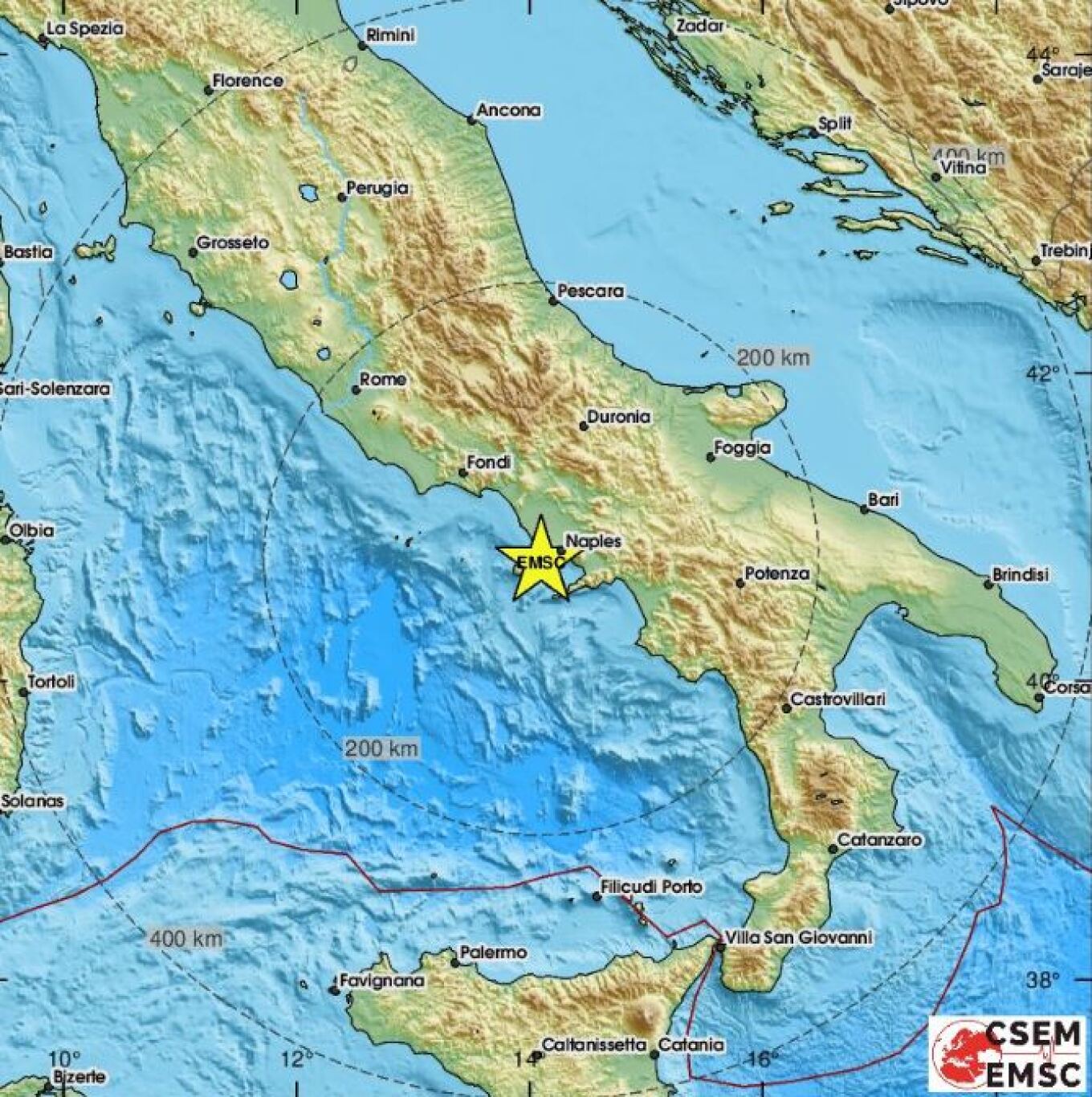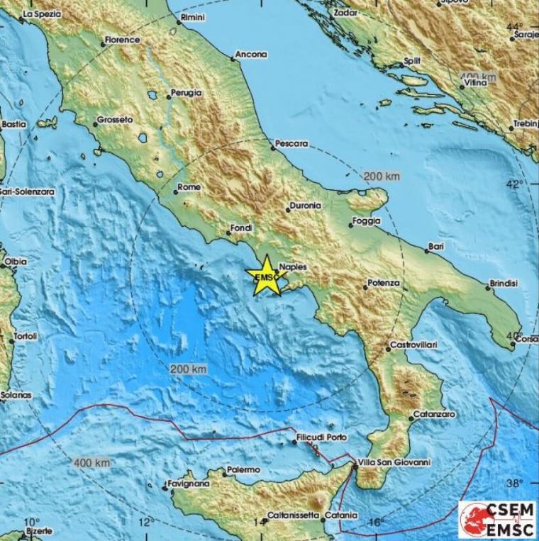 Σεισμός 4,2 Ρίχτερ καταγράφηκε στις 3:35 π.μ. (0135 GMT),από το Ιταλικό Ινστιτούτο Γεωφυσικής και Ηφαιστειολογίας (INGV) κοντά στη Νάπολη και σε περιοχή που εντοπίζεται «υπερηφαίστειο» το οποίο είναι ανενεργό από το 1538. Mέχρι στιγμής δεν υπάρχουν αναφορές για ζημιές ή τραυματίες.