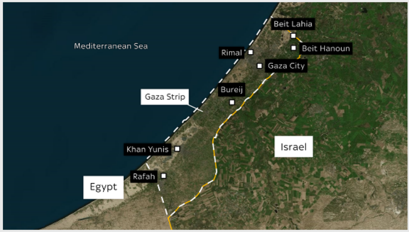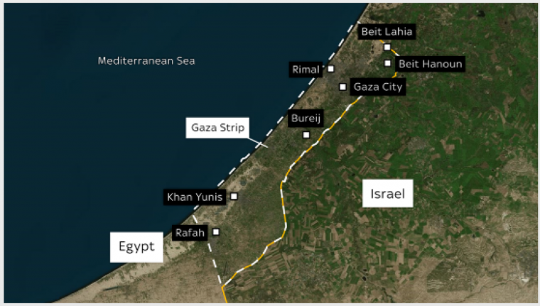 Στην στην παρακάτω δε εικόνα, μπορείτε να δείτε μεγάλες περιοχές με πράσινο χρώμα όπου υπάρχει «ευκαιρία για τις ισραηλινές δυνάμεις να κινηθούν στην περιοχή της Γάζας» και να «εκφοβίσουν» τις δυνάμεις της Χαμάς.