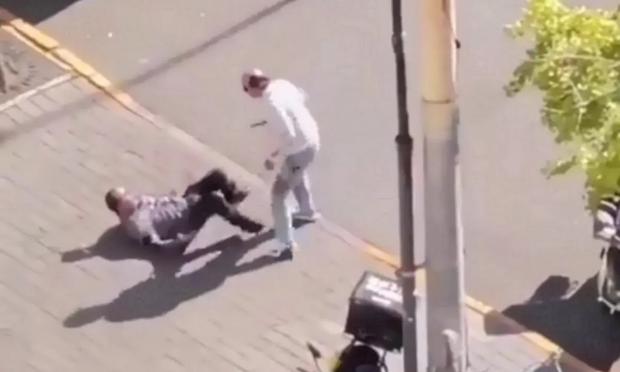 Ο άνδρας προσπαθεί να απομακρυνθεί, ενώ ο άνδρας επιτίθεται με μανία στον ισραηλινό διπλωμάτη.