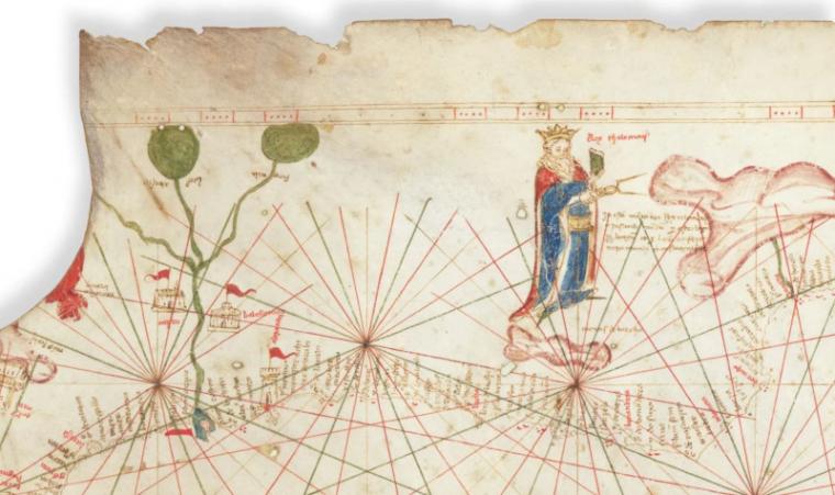 Σε εικονική περιήγηση του Christie's για τη δημοπρασία που διοργάνωσε το ίδρυμα που διαχειρίζεται την περιουσία του κληρονόμου του μεγιστάνα του πετρελαίου Γκόρντον Γκέτι και της συζύγου του Αν, ο Άλεξ Κλάουζεν από τη Barry Lawrence Ruderman Antique Maps Inc παρατήρησε έναν παλιό ναυτικό χάρτη, γνωστό ως πορτολάνο.