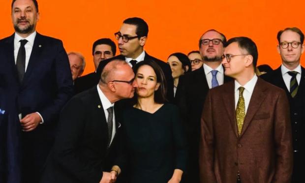 Το δεύτερο περιστατικό είχε προηγηθεί κατά μερικά 24ωρα της αμήχανης στιγμής μεταξύ Μπλίνκεν και Φιντάν στην Άγκυρα. Έλαβε χώρα στη Σύνοδο υπουργών Εξωτερικών της Ευρωπαϊκής Ένωσης, στο Βερολίνο, όταν ο, μάλλον υπερβολικά ενθουσιώδης Κροάτης Γκόρνταν Γκρλιτς-Ράντμαν αποπειράθηκε να φιλήσει την Γερμανίδα Αναλένα Μπέρμποκ.