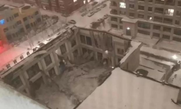 Σε εικόνες που κυκλοφόρησαν στα μέσα κοινωνικής δικτύωσης διακρίνεται μια τσιμεντένια κατασκευή να έχει καταρρεύσει και να έχει καλυφθεί από χιόνια.