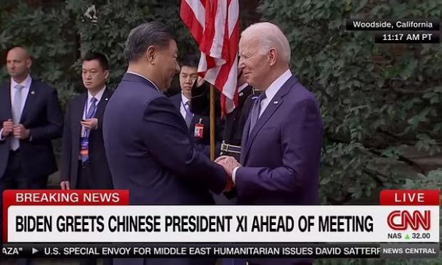 Οι δύο άνδρες είχαν μια θερμή χειραψία έξω από μια γεωργιανή έπαυλη νότια του Σαν Φρανσίσκο όπου θα πραγματοποιηθούν οι συνομιλίες, με τον Κινέζο ηγέτη να εμφανίζεται χαμογελαστός και ευδιάθετος, όπως σχολιάζει το CNN.