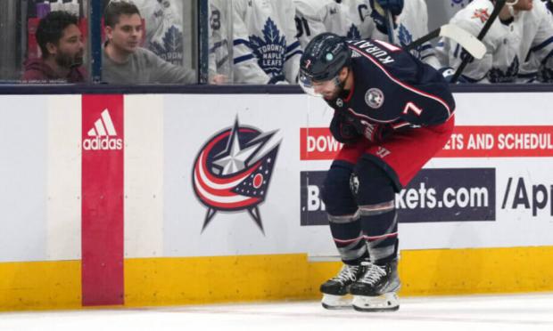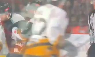 Σε αγώνα για το πρωτάθλημα χόκεϊ των ΗΠΑ (NHL) ο Σον Κουράλι της Κολόμπους μετά από σκληρό μαρκάρισμα δύο αντιπάλων φέρεται να δέχθηκε και το πακ (το... αντίστοιχο μπαλάκι του χόκεϊ) στο στήθος.