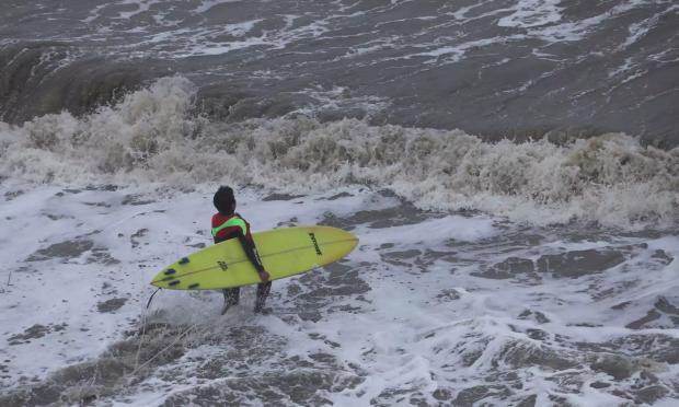 Την ώρα που οι περισσότεροι κάτοικοι προετοιμάζονται για την επανάληψη αυτού του ακραίου φαινομένου, ορισμένοι ατρόμητοι σέρφερς φιλοδοξούν να δαμάσουν τα τεράστια κύματα.