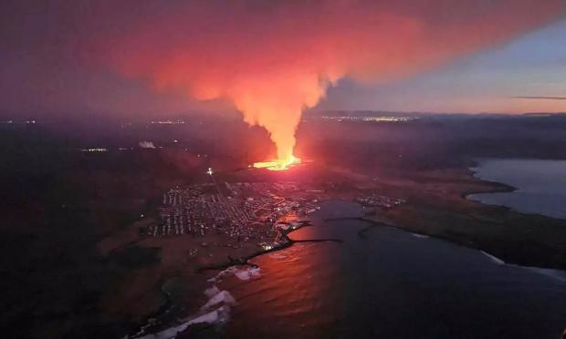 Στη νοτιοδυτική Ισλανδία, η λάβα από την έκρηξη του ηφαιστείου, η οποία βρίσκεται σε εξέλιξη έφθασε την Κυριακή 14 Ιανουαρίου στο λιμάνι Γκρίνταβικ, όπου δύο σπίτια έπιασαν φωτιά, σύμφωνα με εικόνες που μεταδόθηκαν από τη δημόσια τηλεόραση.
